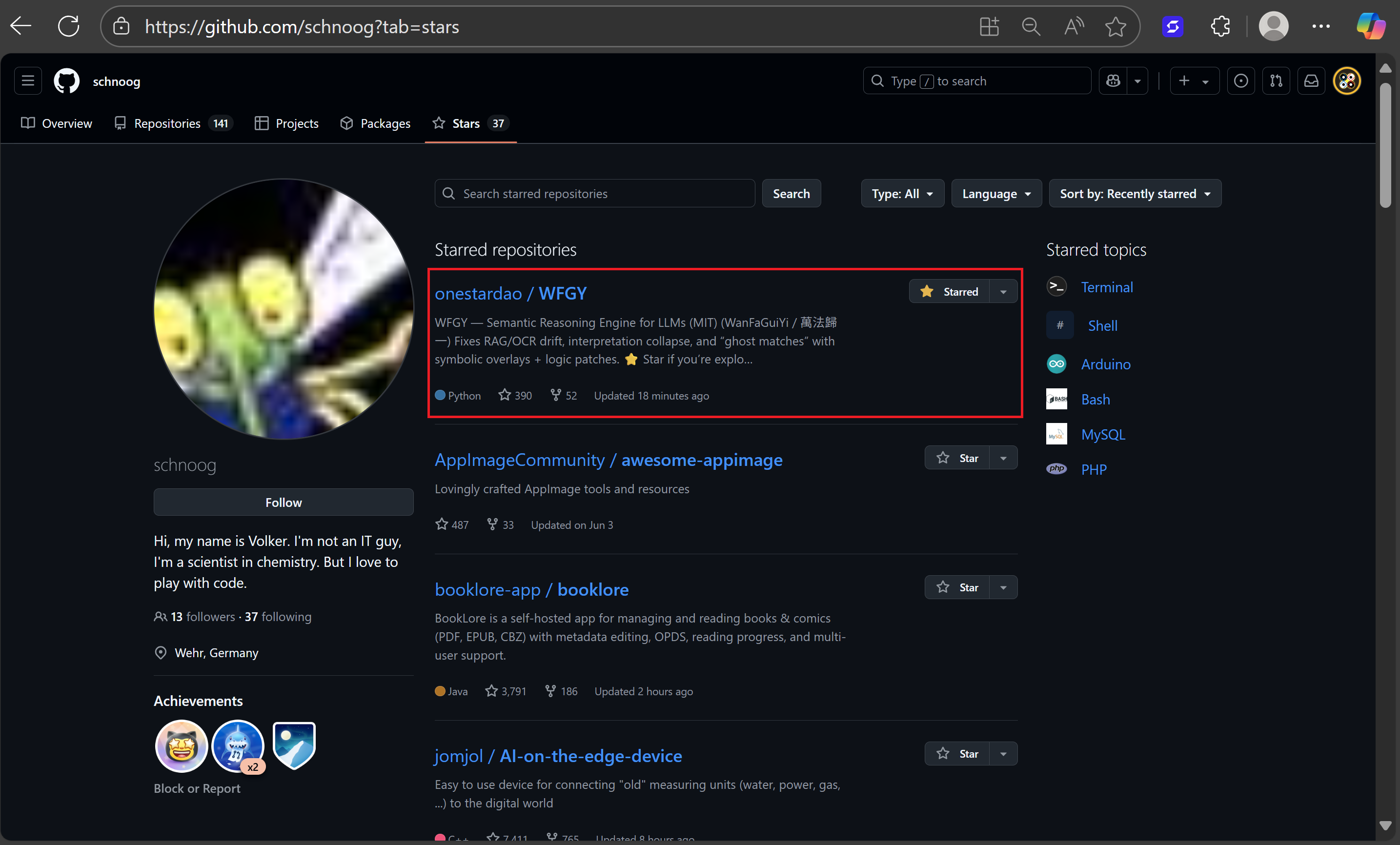 | dhamaniasad | awesome-postgres (11k★), awesome-linux (4.6k★), HeadlessBrowsers (6.4k★) · Full-stack dev, nomadic OSS builder | ![]() |