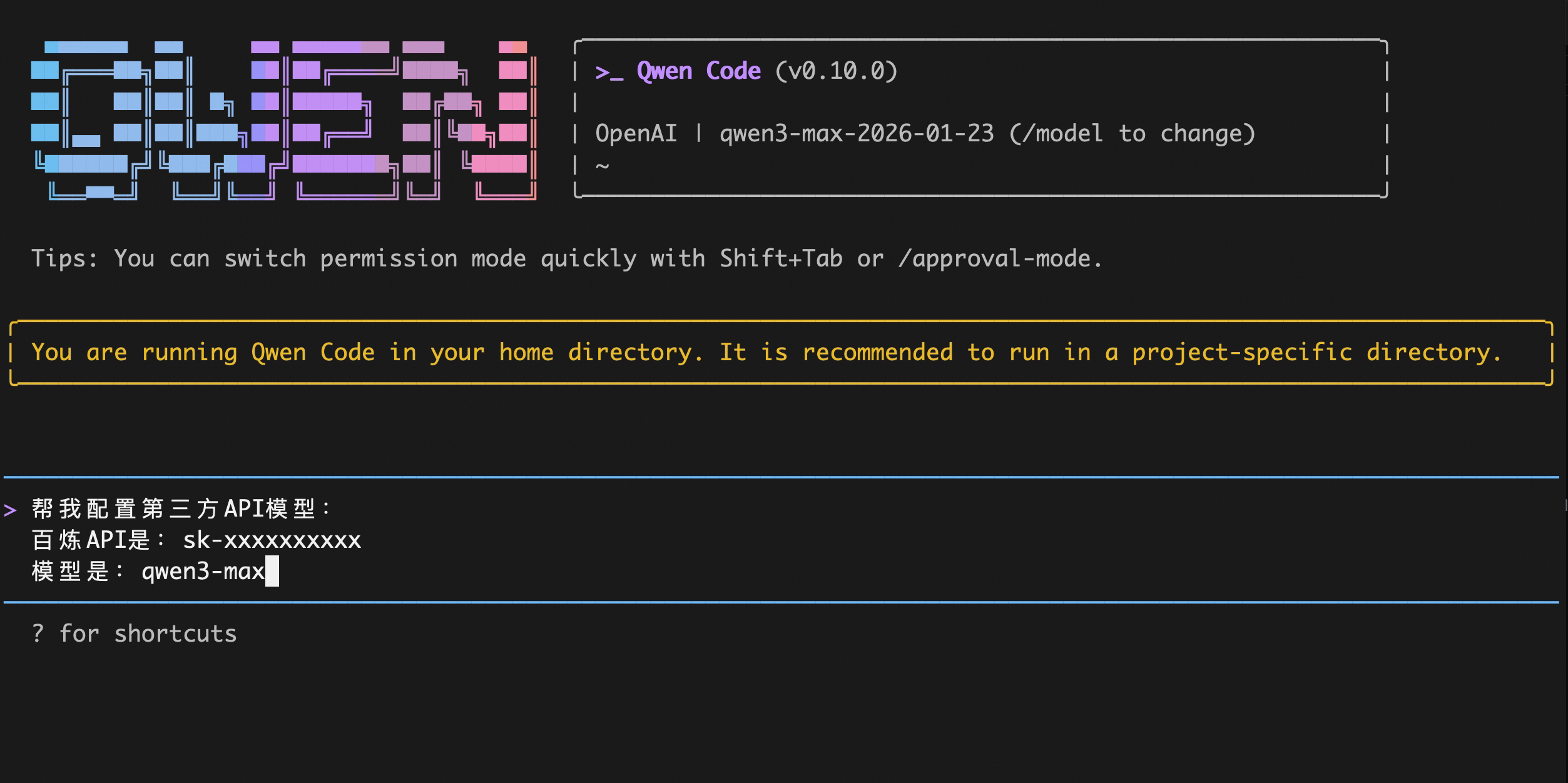 qwen-code --openai-api-key "your-api-key-here"