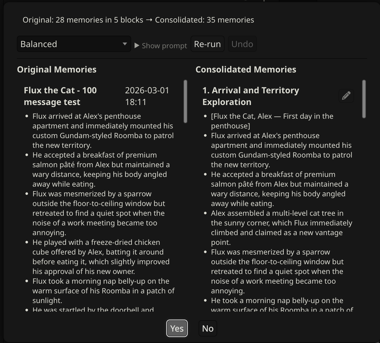 - Click Apply to write consolidated memories to the file